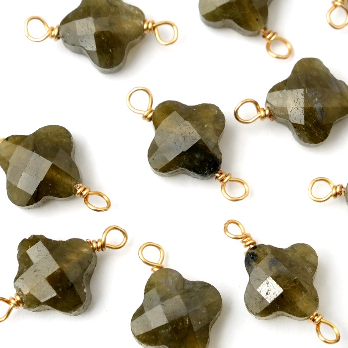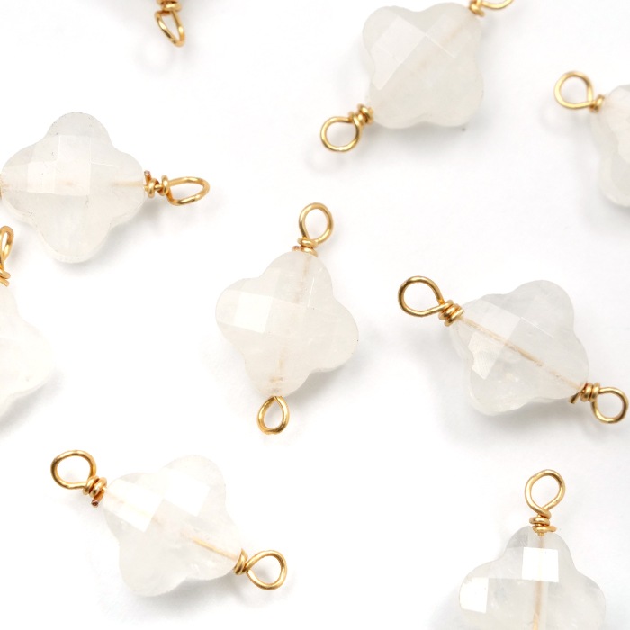 【K14GF/1個売り】水晶 コネクター クローバーカット 天然石チャーム 約18×10mm ワイヤー