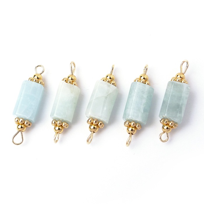 【銅製/1個売り】アクアマリン コネクター 天然石 約25×6mm 幸運 癒し ゴールドカラー ハンドメイド