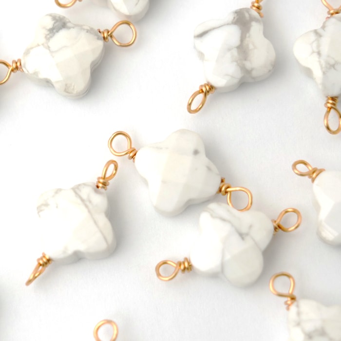 【K14GF/1個売り】ハウライト コネクター クローバーカット 天然石チャーム 約18×10mm ワイヤー