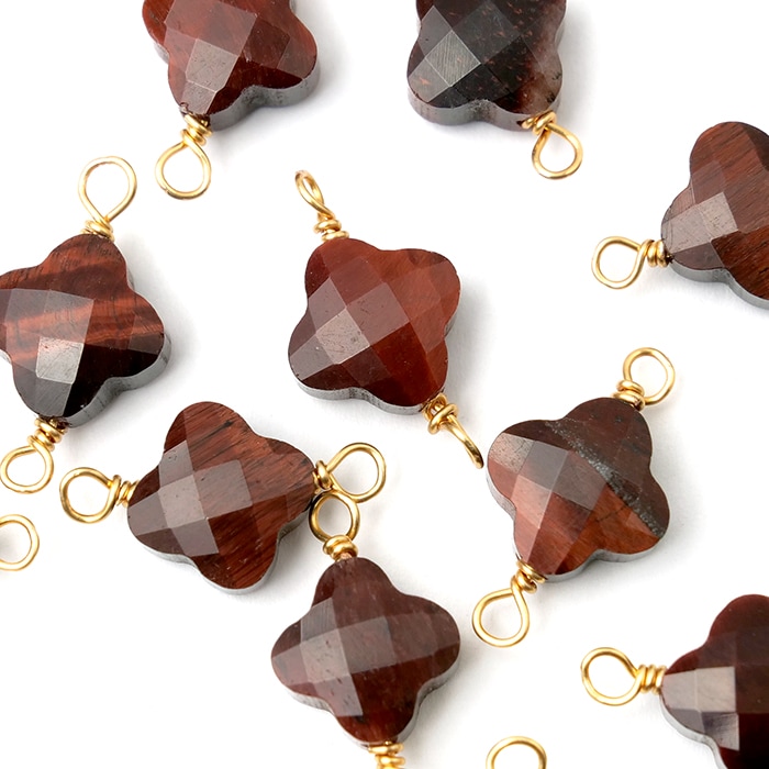 【K14GF/1個売り】レッドタイガーアイ コネクター クローバーカット 天然石チャーム 約18×10mm ワイヤー