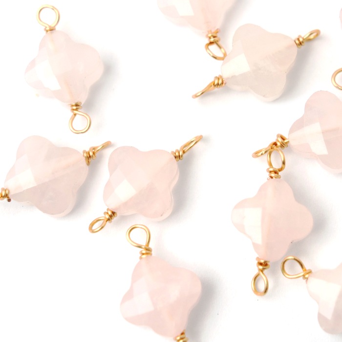 【K14GF/1個売り】ローズクォーツ コネクター クローバーカット 天然石チャーム 約18×10mm ワイヤー