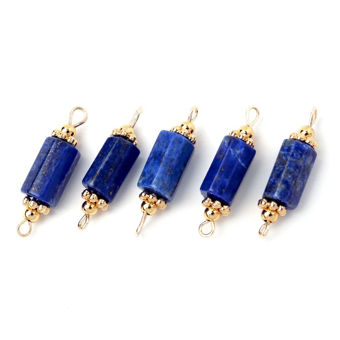 【銅製/1個売り】ラピスラズリ コネクター 天然石 約25×6mm 幸運 邪気除け ゴールドカラー ハンドメイド