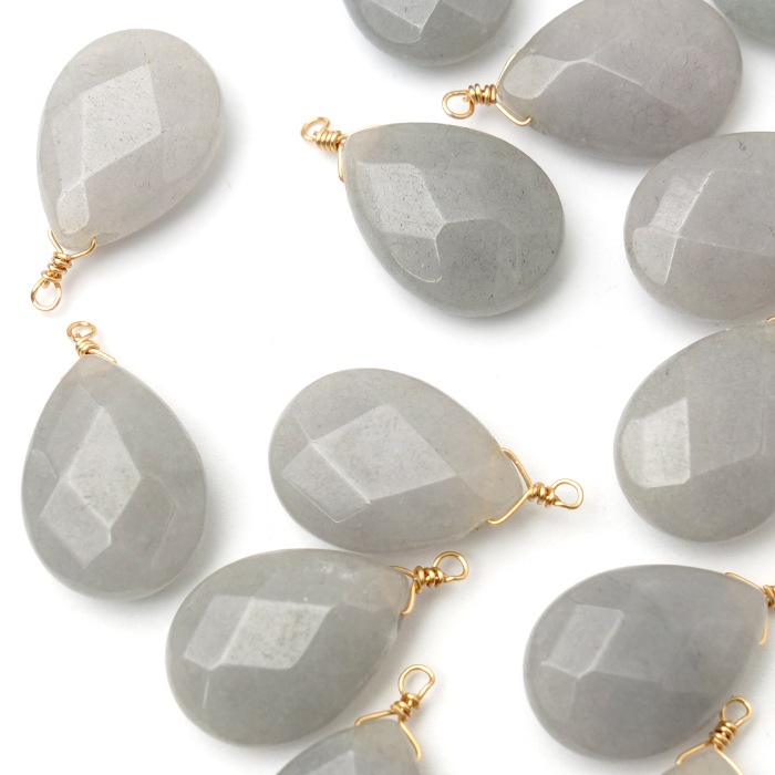 【K14GF/1個売り】グレーアベンチュリン 雫カット 天然石チャーム 約23×13mm ハンドメイド用