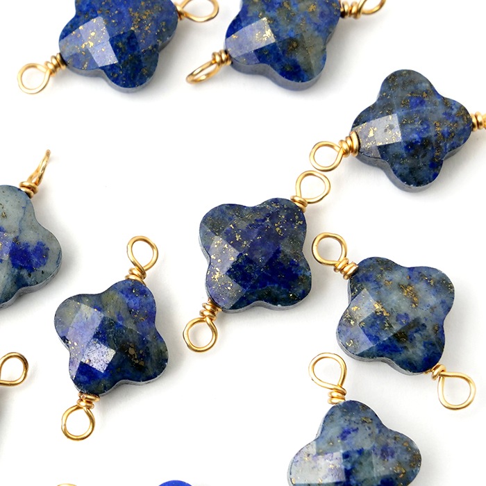 【K14GF/1個売り】ラピスラズリ コネクター クローバーカット 天然石チャーム 約18×10mm ワイヤー