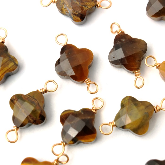 【K14GF/1個売り】タイガーアイ コネクター クローバーカット 天然石チャーム 約18×10mm ワイヤー
