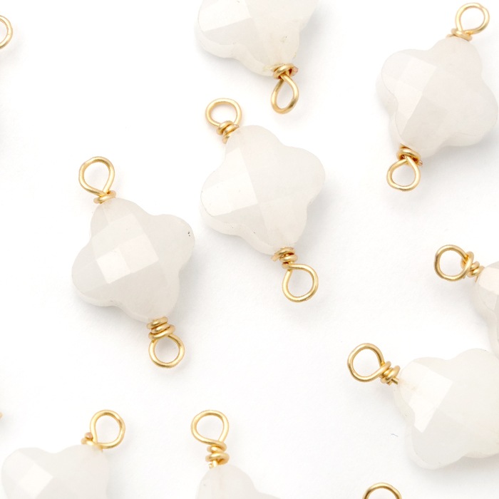 【K14GF/1個売り】ホワイトカルセドニー クローバーカット 天然石チャーム 約18×10mm コネクター用