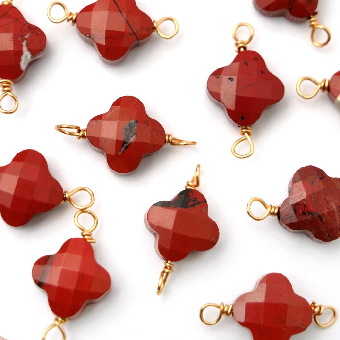 【K14GF/1個売り】レッドジャスパー コネクター クローバーカット 天然石チャーム 約18×10mm ワイヤー