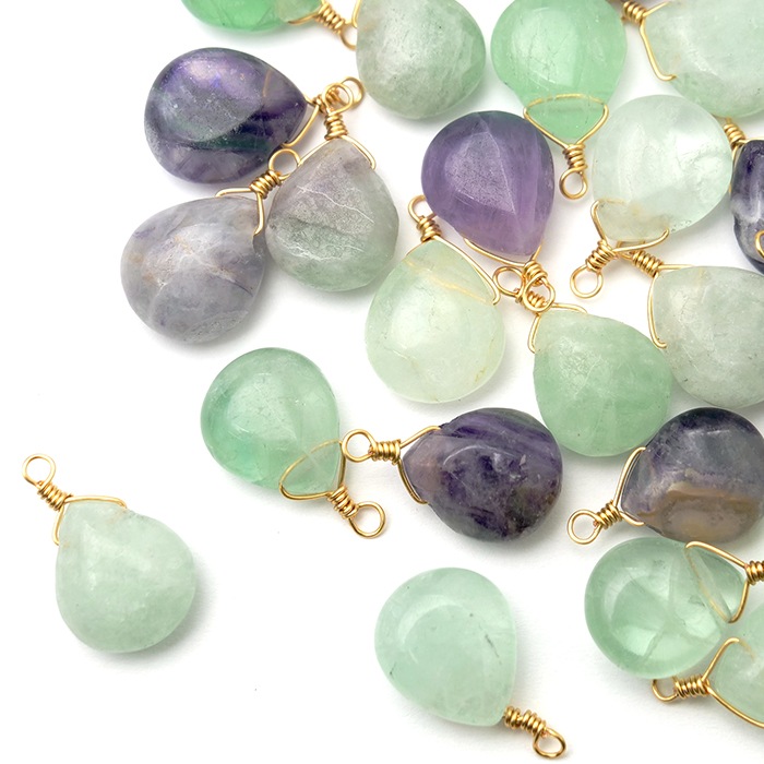 【K14kgfカラー/1個売り】フローライト ペアシェイプ 天然石 約17×12mm 癒し カラーストーン ワイヤー