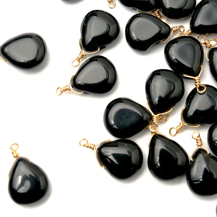 【K14kgfカラー/1個売り】オニキス ペアシェイプ 天然石 約10×12mm 魔除け 黒石 ワイヤーラップ