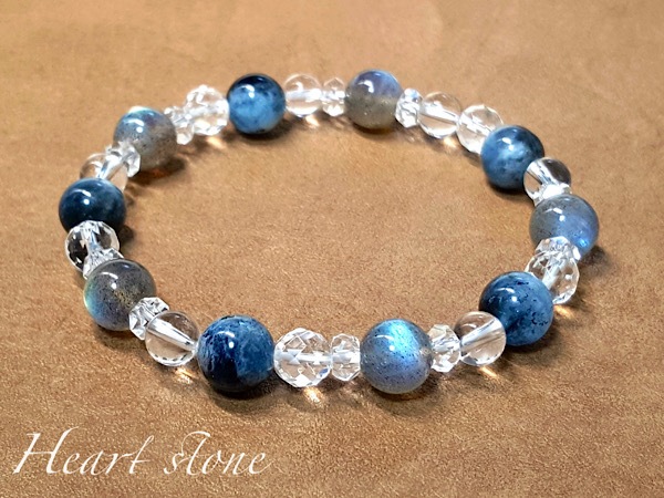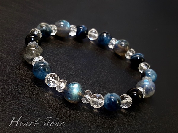 【月明かりの海】ブラックアクアマリン×ラブラドライト×ブルータイガーのブレスレット Ladies\'