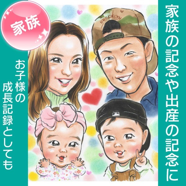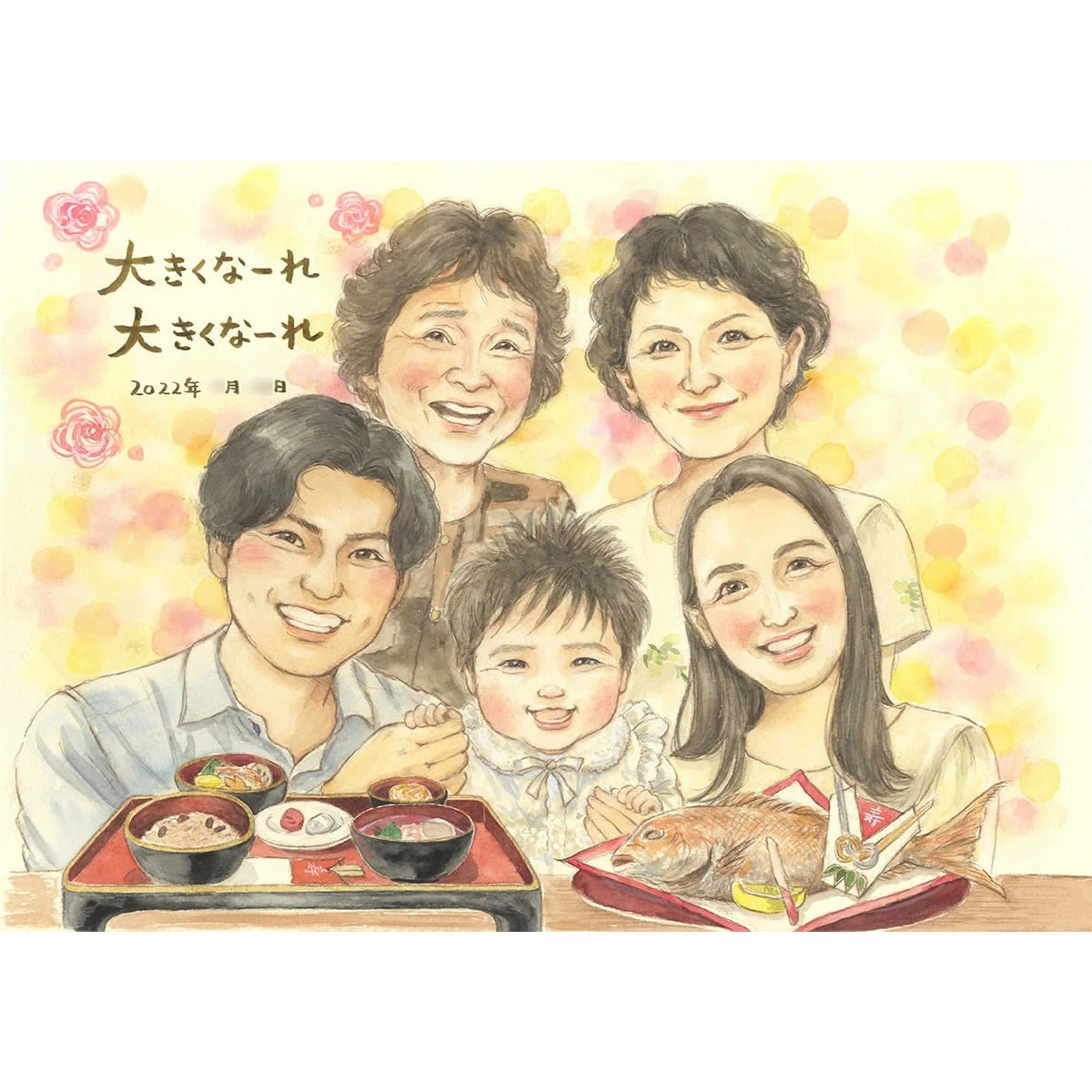 家族の絆を描く、記念に残る似顔絵ギフト ぽん太