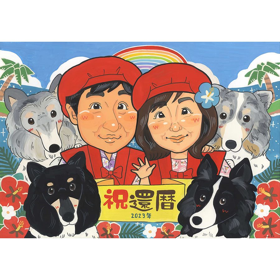 還暦 似顔絵 プレゼント 両親 ペット 犬 コリー 似顔絵ギフト 還暦祝い 名入れ お祝いギフト 60歳 お祝いメッセージ 赤いち...
