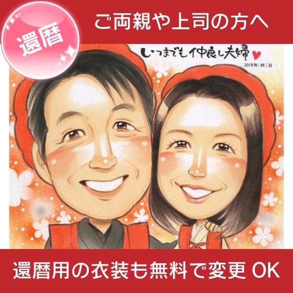 感謝の想いを込めた両親還暦祝い似顔絵ギフト 長寿祝いに最適な特別な贈り物 世界にひとつの還暦似顔絵 お世話になった方々へ感謝を贈る...