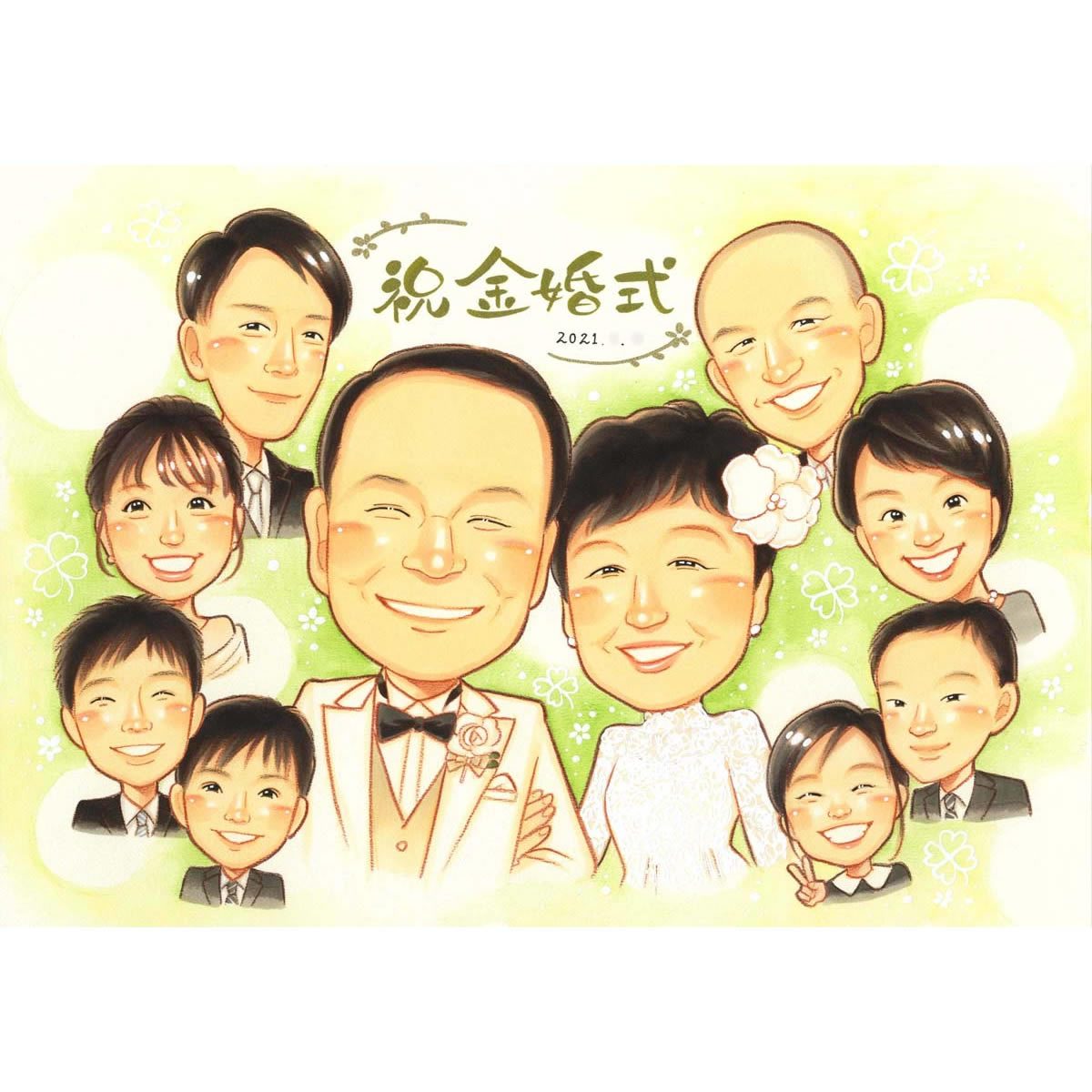 家族の絆が深まる金婚式記念似顔絵ギフト 今も続く幸せを伝える似顔絵プレゼント 宝石の輝きに負けない似顔絵 永遠の愛を描いた特別な似...