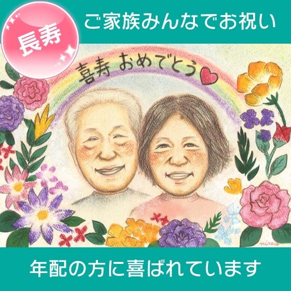 喜寿おめでとう似顔絵 長寿祝いにぴったり 丁寧な手書き風の似顔絵ギフト 長寿のお祝いに贈る似顔絵ギフト 祖父母や両親、先輩や上司に...
