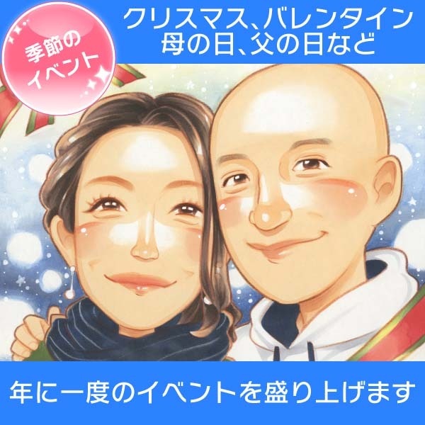シーズンイベントにぴったりの思い出似顔絵ギフト 感謝の気持ちを込めた季節の贈り物似顔絵 季節のイベントにも使える笑顔溢れる似顔絵ギ...