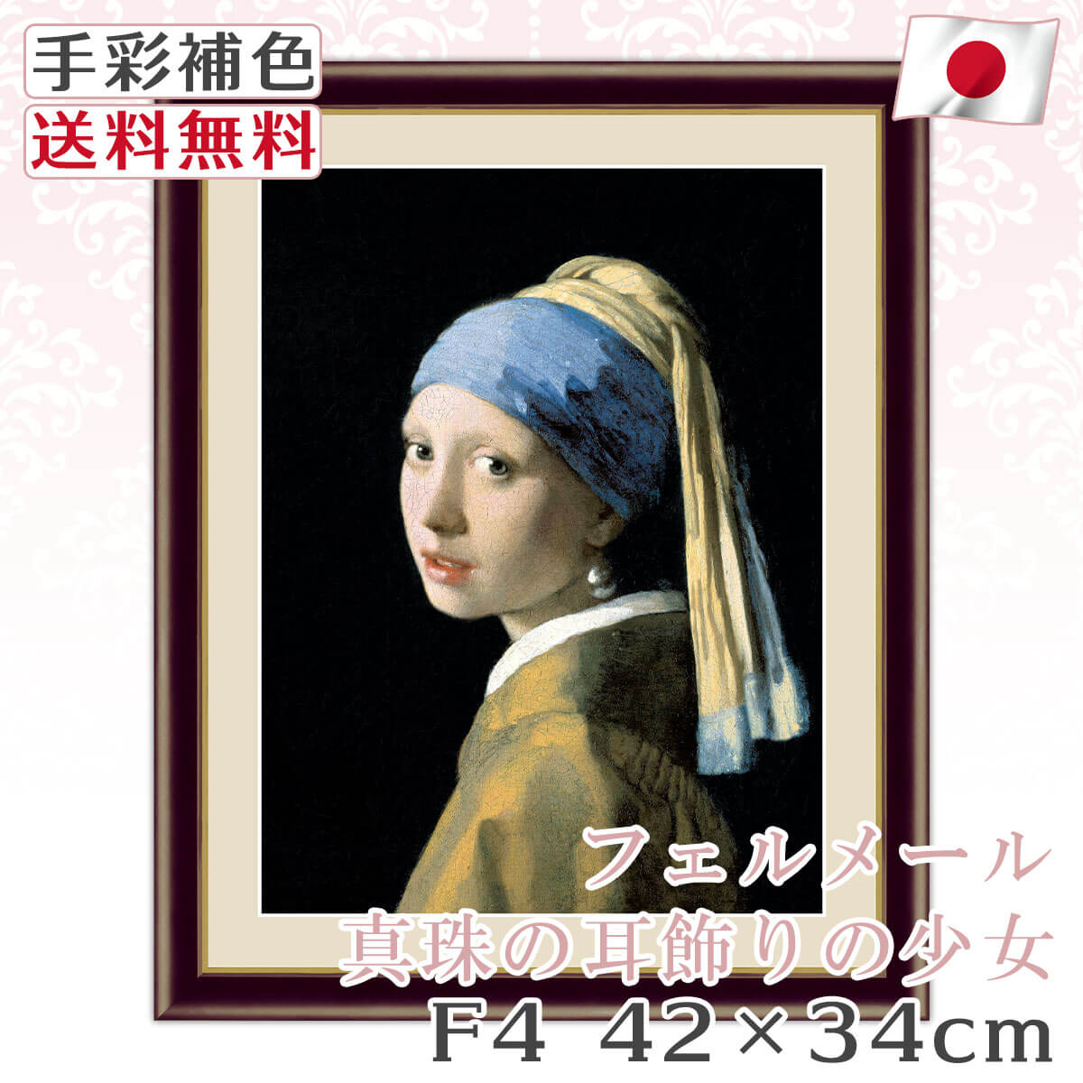 【 送料無料 】 絵画 額絵 名画 フェルメール 真珠の耳飾りの少女 レプリカ 手彩補色 インテリア 壁掛け 絵 額入り 風水 お...