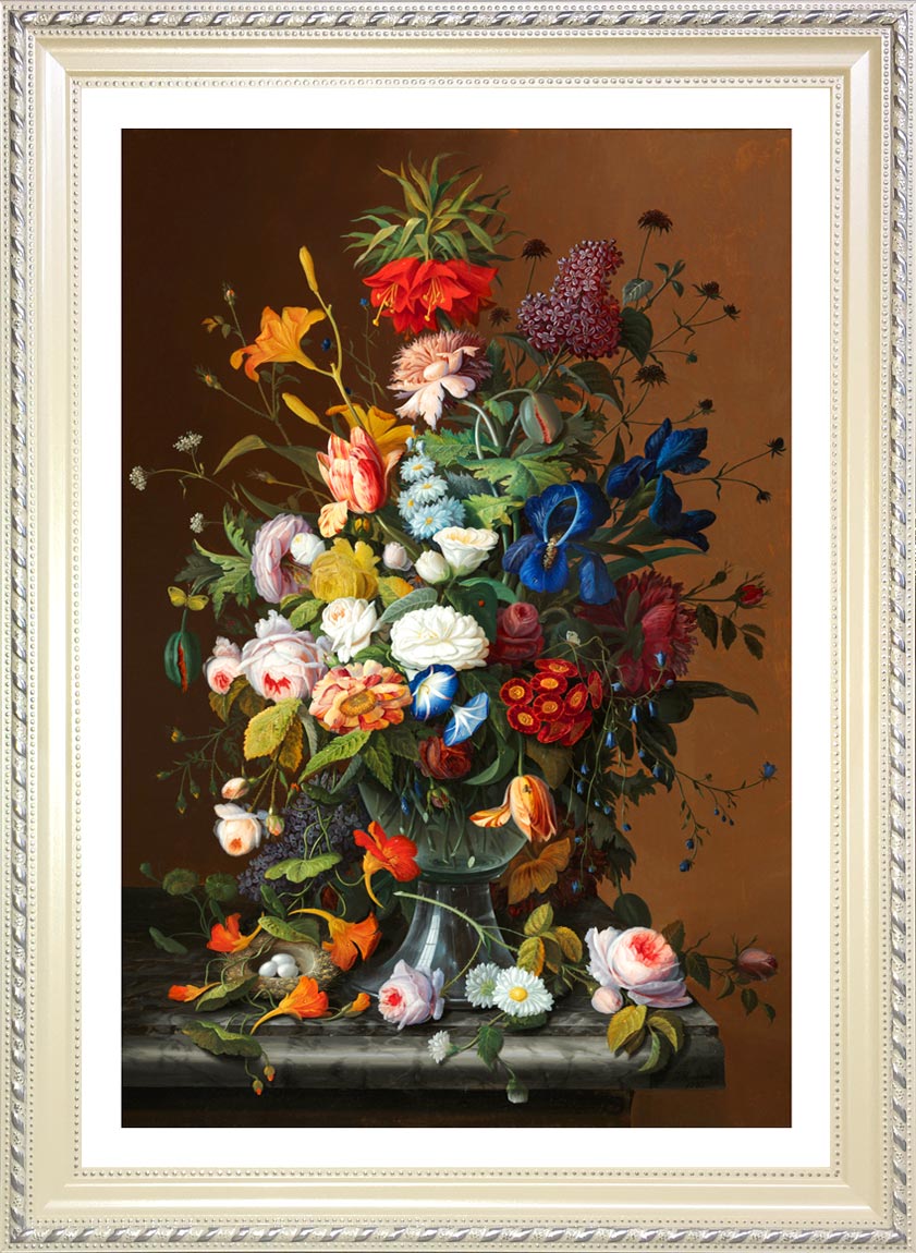 Severin Roesen,花と鳥の巣 Flower Still Life with Bird\'s Nest ジークレーポスタ...