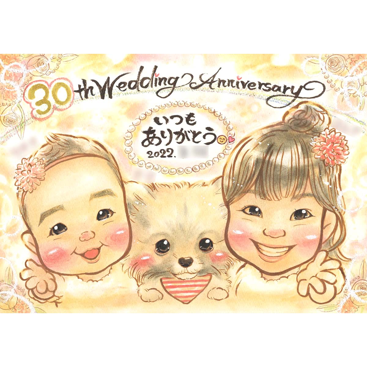真珠色に輝く30年の愛 両親の真珠婚式を祝う特別な似顔絵プレゼント 両親の真珠婚式を祝う感慨深い似顔絵ギフト 愛を深める30年、こ...