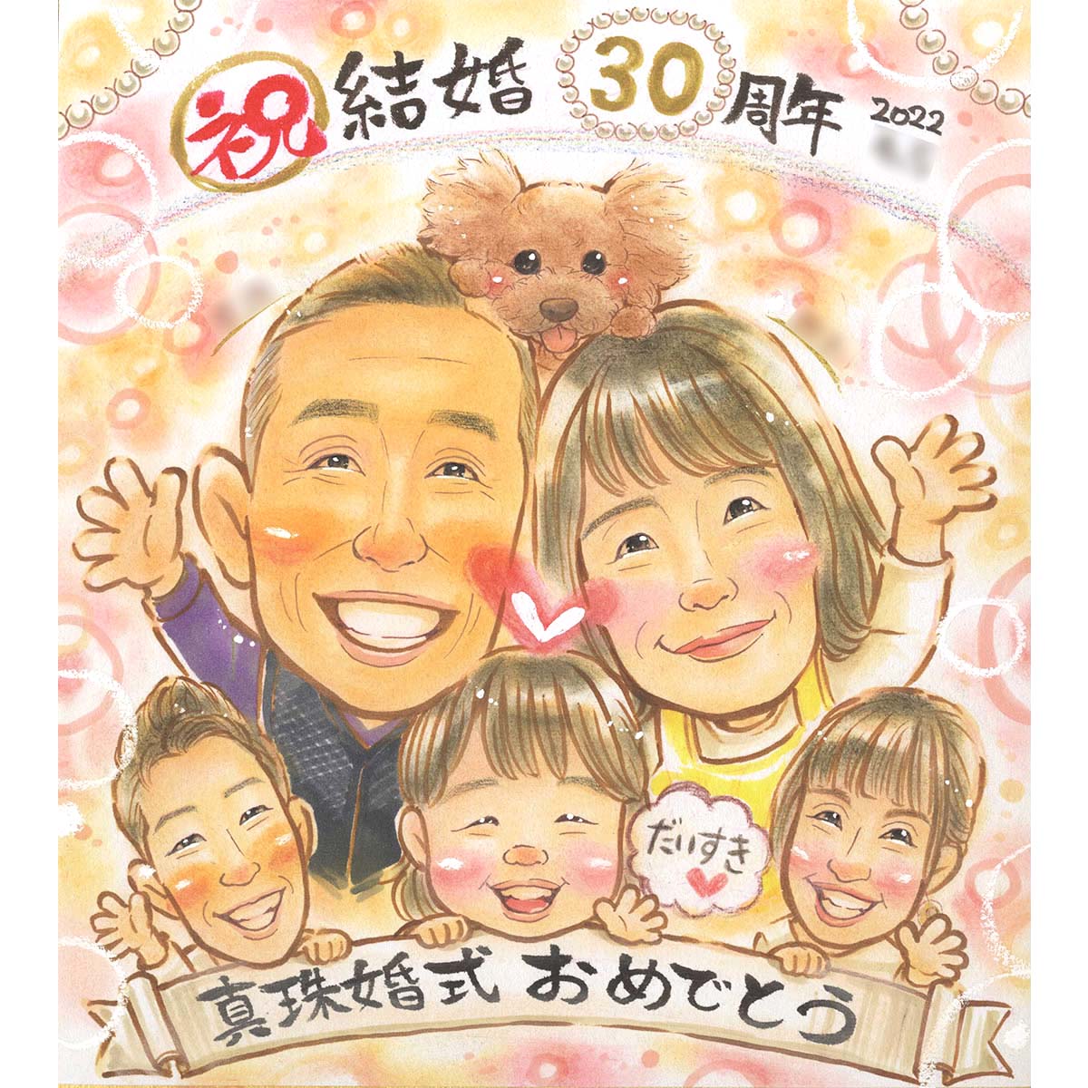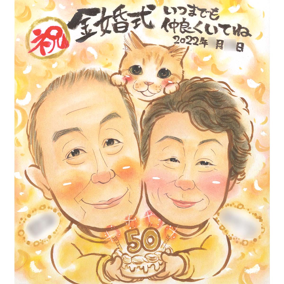祝金婚式おめでとう似顔絵 ご両親の結婚50周年を家族みんなの似顔絵でお祝い