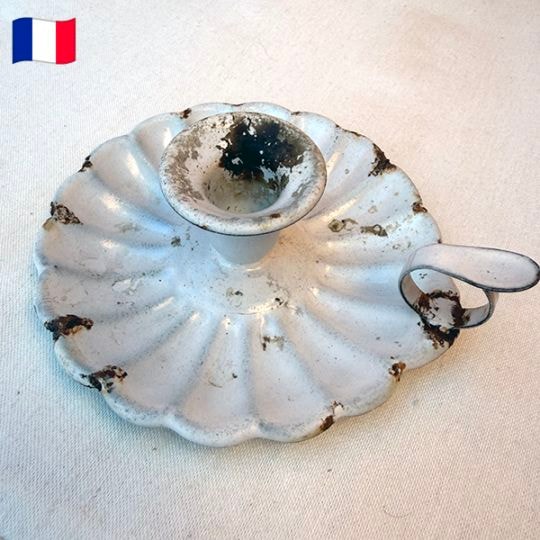 フランス買付品 ブロカント ホーローアンティークキャンドルホルダー ビンテージ燭台 ヨーロッパヴィンテージキャンドルスタンドホーロ...