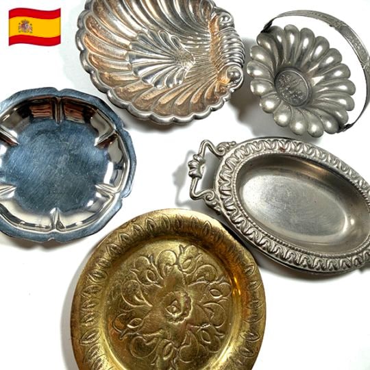 ヨーロッパアンティーク雑貨 スペイン シルバープレート シルバートレイ シルバーメッキ真鍮トレイ ヴィンテージお皿 インテリア雑貨...
