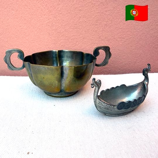 ヨーロッパアンティーク ポルトガル シルバートレイ アクセサリーケース シュガーボウル 真鍮カップ お皿 ボウル プリンアラモード...