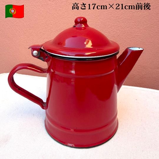 ヨーロッパアンティーク 良品 レッドホーローポット ナチュラルケトル 希少状態良好 ホーローキッチン雑貨 アンティークボトル キ...