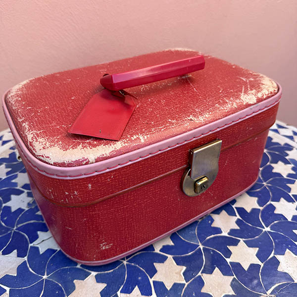ポルトガル製ヴィンテージ レトロレッド バニティーケース 化粧品用箱 ソーイングボックス裁縫箱 コスメボックス 営業日即日発送 <...