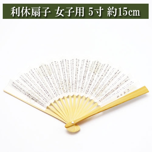 利休扇子 女子用 白竹 5寸 約15cm 利休百首 茶道具 茶器 茶の湯道具 抹茶 お点前 水屋 お稽古