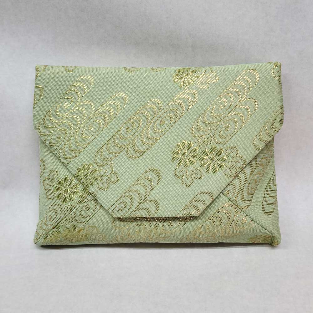 数寄屋袋 便利なチャック付き 紗 菊に観世水 草色