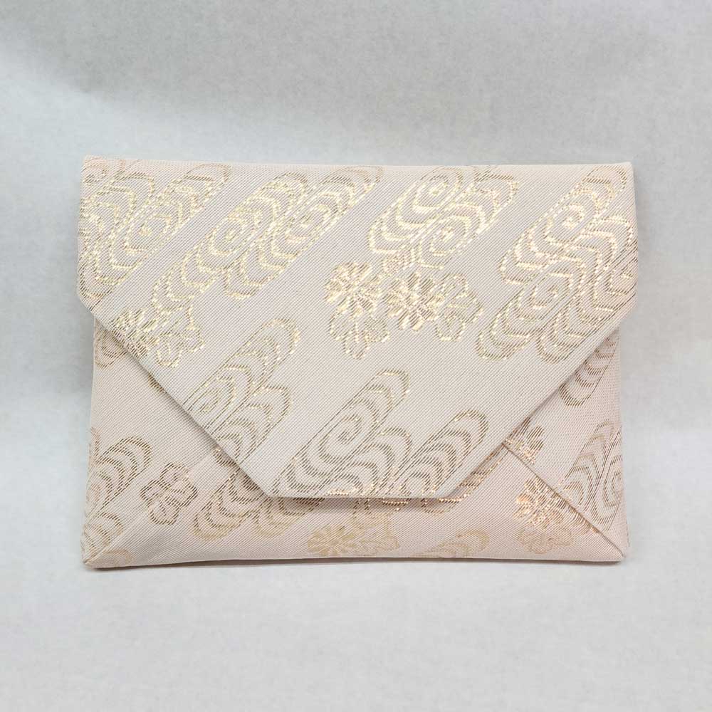 数寄屋袋 便利なチャック付き 紗 菊に観世水 ベージュ