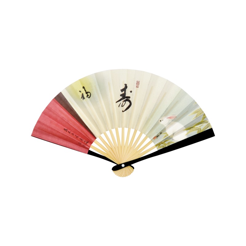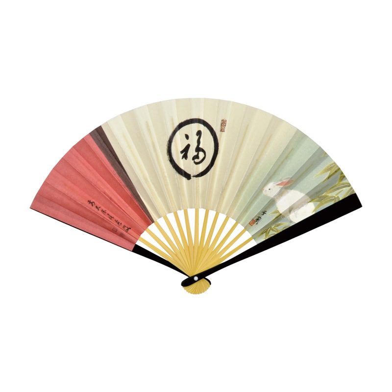 干支扇子 5寸 黒塗 白兎 積應師墨蹟写「福寿」 曽根幸風画 裏面:千家十職 (メール便対応商品)