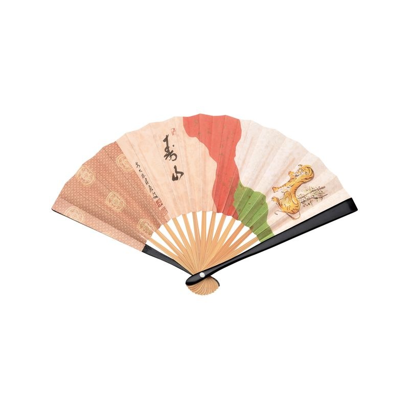 扇子 6寸 黒塗 幸風画 虎ノ図 積應師写「吉祥」 裏面:千家十職