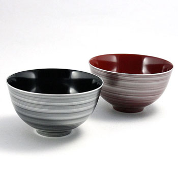 ヒロセ:美味小丼椀 銀渦(黒 朱 ペア)化粧箱入