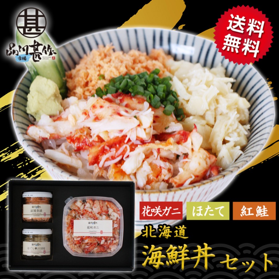 【送料無料】北海道 花咲ガニの3色丼セット 花咲がに90g 帆立貝柱40g 紅鮭60g