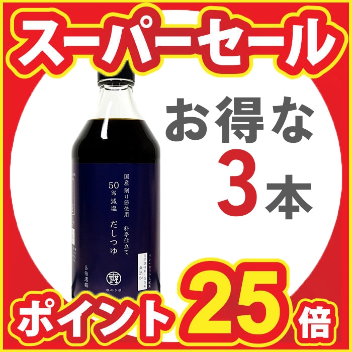 11/24 10時より【スーパーSALE特別企画!ポイント25倍!】【お得な3本まとめ買い】塩ぬき屋 50%減塩だしつゆ 500...