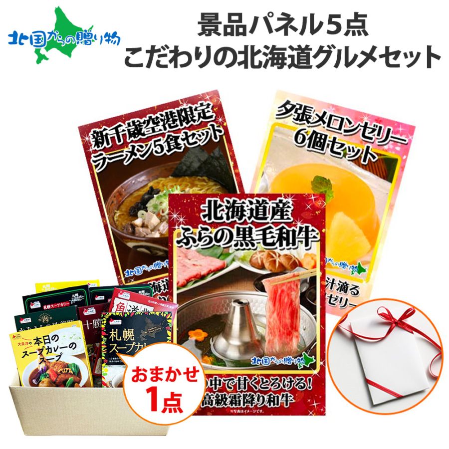 グルメギフト券【目録】 北海道グルメ5点セット/ふらの和牛/新千歳空港限定ラーメン セット/夕張メロンゼリー/おまかせ北海道カレー...