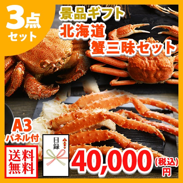 グルメギフト券【目録】北海道カニ三昧3点セット/三大蟹 タラバガニ ズワイガニ 毛蟹/目録 景品 パネル 北海道 かに 毛ガニ 姿...