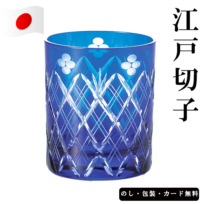 江戸切子 小花剣矢来紋ロックグラス瑠璃 SE5-169-1 KIRIKOテーブルウェア 内祝 結婚祝い