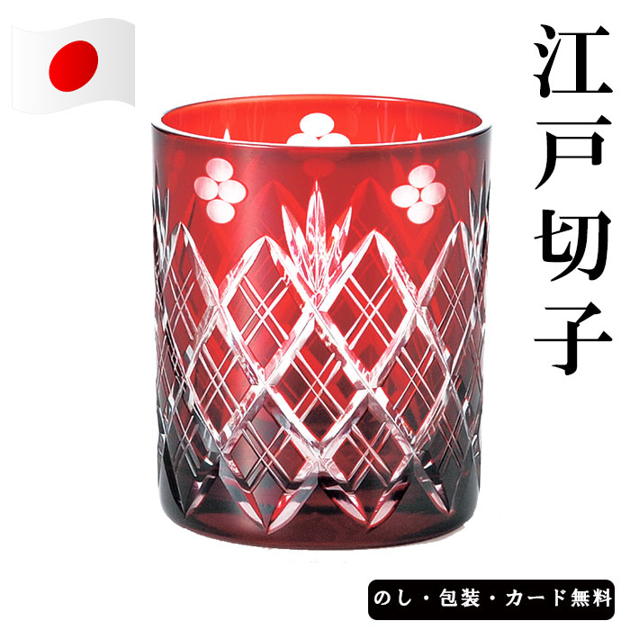 江戸切子 小花剣矢来紋ロックグラス赤 SE5-169-2 KIRIKOテーブルウェア 内祝 結婚祝い 香典返し