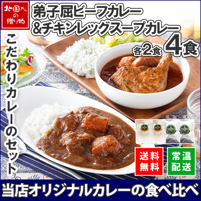 北国オリジナル まるごとチキンレッグスープカレー&弟子屈ビーフカレー 4食セット(ギフト箱なし) レトルト カレー 食べ比べ 詰め...