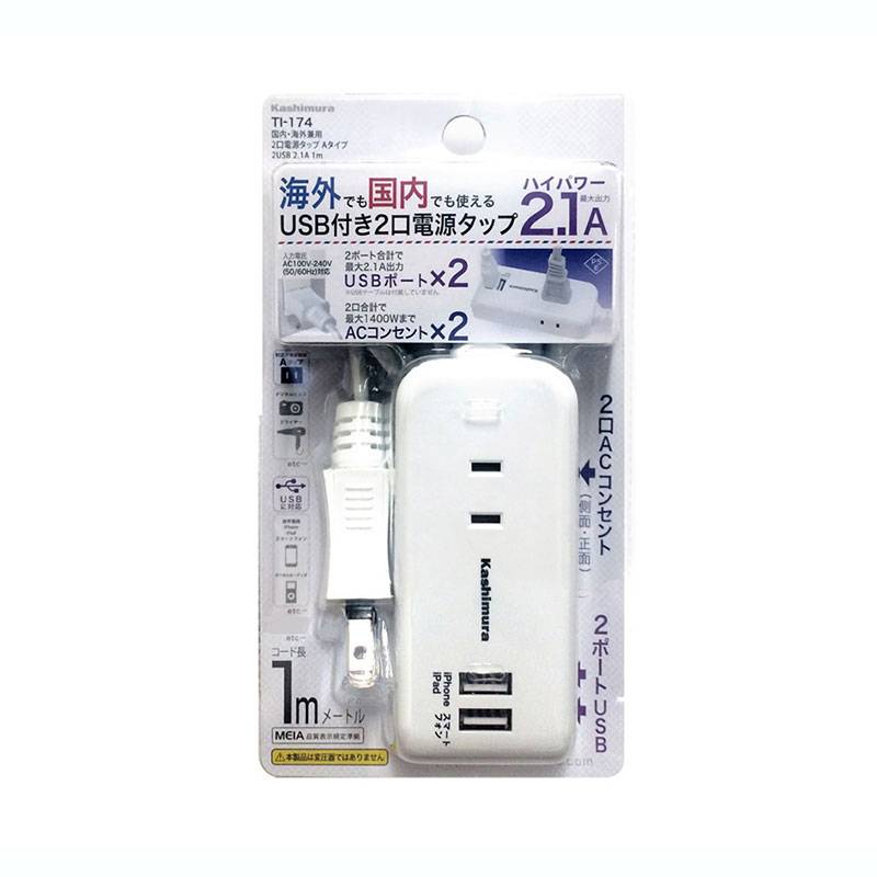 【旅行グッズ】兼用2口電源タップ AタイプUSB 2.1A TI-174