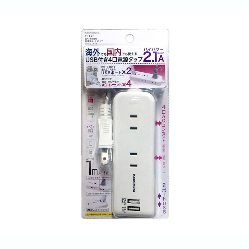【旅行グッズ】兼用4口電源タップ AタイプUSB 2.1A TI-175