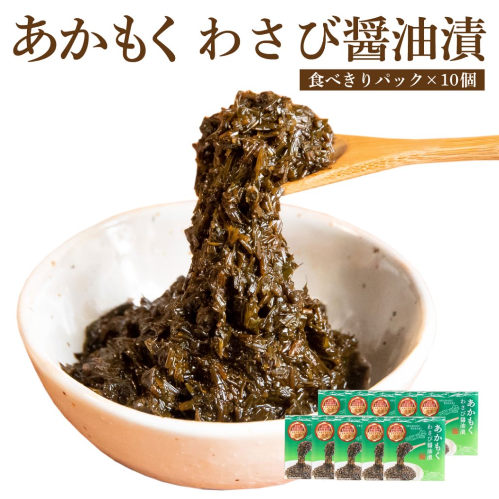 あかもくわさび醤油漬【食べきりパック×10個 】【在庫が切り替わり次第、2段パックから1段深底パックへ変更】