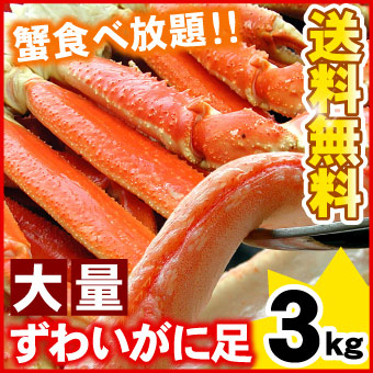 ズワイガニ足 大量3キロ (約9肩前後入) 蟹 カニ かに ずわい蟹 送料無料(沖縄宛は別途送料2,200円頂戴いたします)