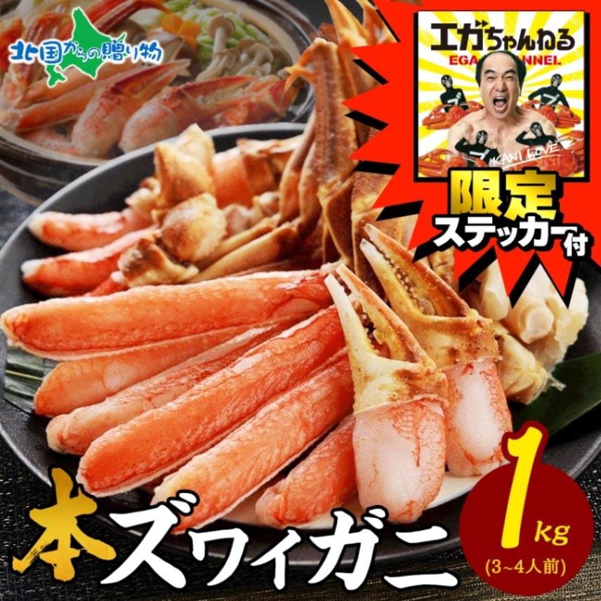 【年内配送12/23(月)AM11:00迄】エガちゃんねる 限定 ステッカー付き 生ズワイガニ かにしゃぶ セット 1kg 順次出...