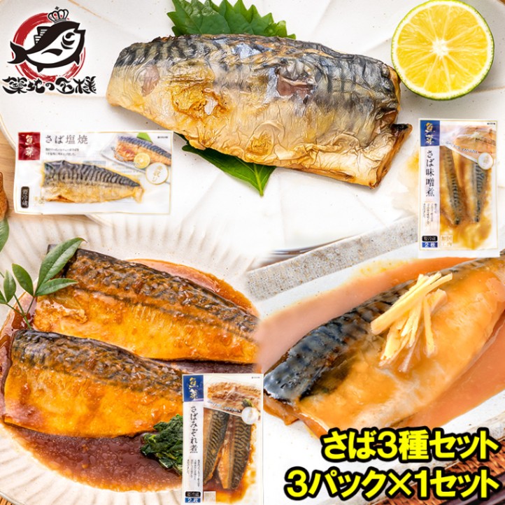 送料無料 煮魚セット 魚菜パックセット サバ3種セット さばの塩焼き さば味噌煮 さばのみぞれ煮 合計3パック