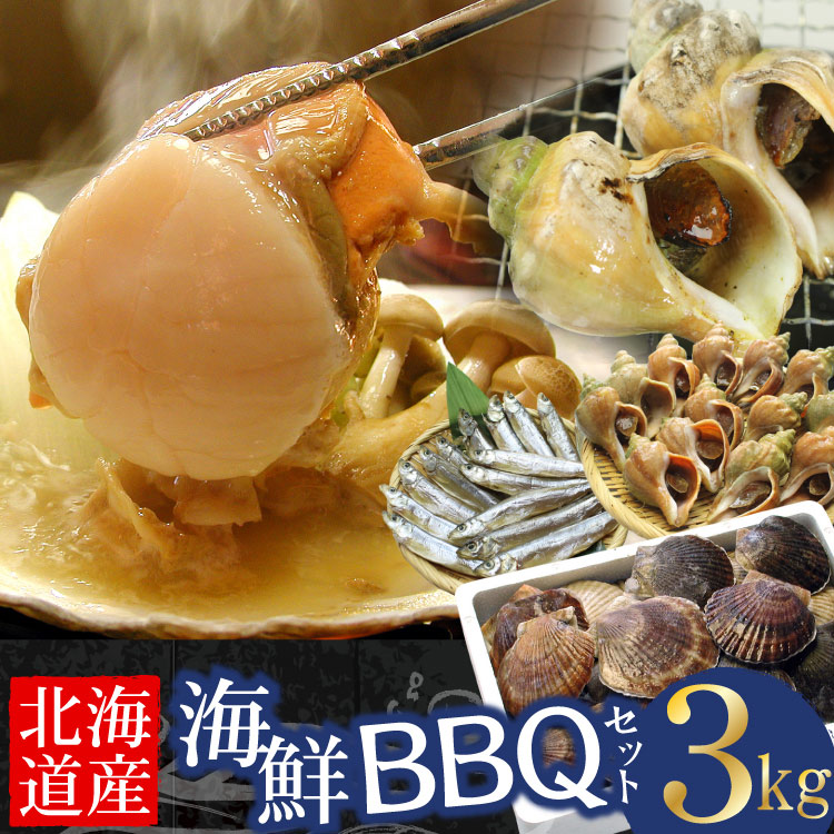 「オマケ付き」北海道産 海鮮バーベキュー セット 合計3kg(殻付ホタテ貝・青つぶ貝)冷凍 海鮮BBQセット 貝焼き ツブ 食材 ...