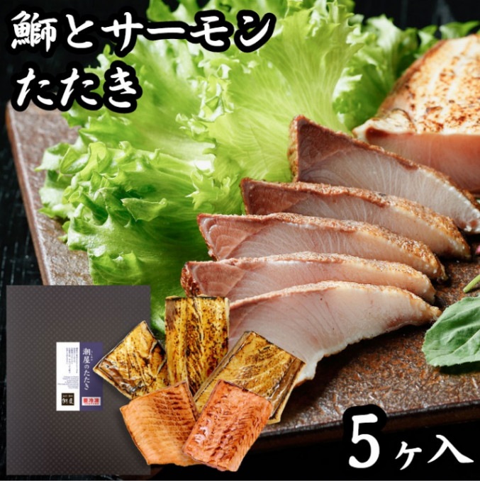 逸味 潮屋:とろけるような濃厚な脂と旨味「鰤とサーモンのたたき詰め合せ(5個入り)」
